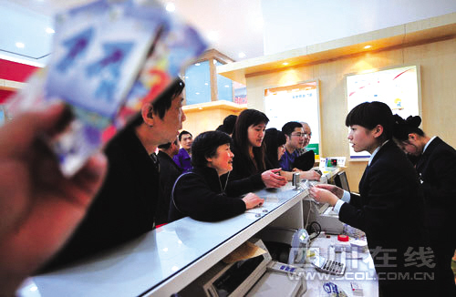 游客在上海世博会票务销售点购买门票,大会精心的票务组织让他们感觉很满意。