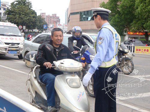 “师傅,非机动车请到非机动车道上去行驶,这是机动车道,是行驶汽车的,否则比较危险,人身安全得不到保障,下次注意,好吗?”昨日上午,一名交警正在路口劝导违规市民。