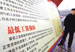 人保部促多地上调最低工资 上海1120元全国最高