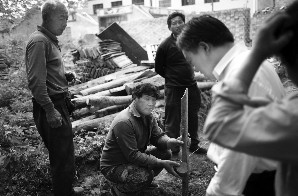 5月13日,赵作海的老房子在柘城县县政府工作人员的督促下进行重建。 本报记者 李强 摄