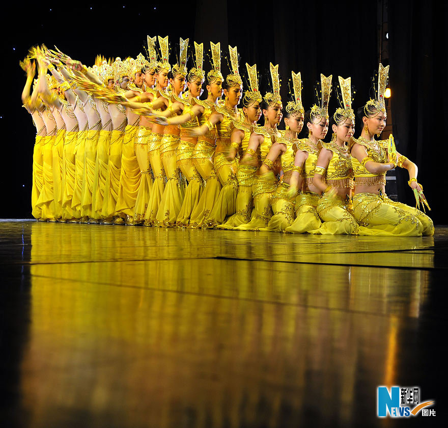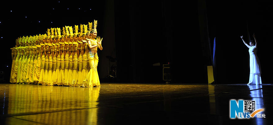 5月16日,在印度首都新德里,中国残疾人艺术团演员表演舞蹈《千手观音》。当晚,中国残疾人艺术团“我的梦”大型音乐舞蹈在新德里举行首场演出,几十名残疾人演员用精彩的表演和真挚的情感打动了到场的印度观众。新华社记者王晔摄