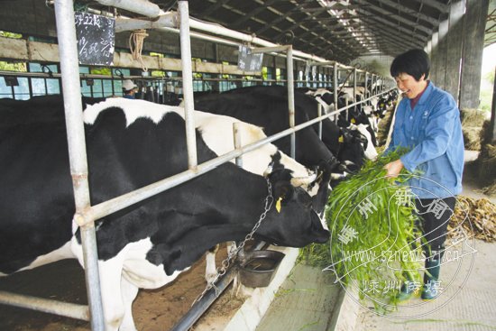 绍兴市一景乳业有限公司是绍兴市唯一一家产供销一体化的乳制品企业,公司拥有2个自营牧场共 800多头奶牛,日产鲜奶10多吨。今年以来,一景牛奶在绍兴市场上销售形势看好,并且还打入了杭州市区市场,牛奶销量比去年同期增长50%。图为自营牧场一角。