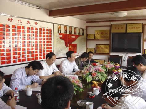 5月12日下午,省委组织部远教办副主任张宏、绍兴市委组织部副部长赵铭带调研组一行10余人,在嵊州市委组织部长陶关锋、副部长钱夏平的陪同下,来到三界镇南街村远教站点调研远教工作,镇主要领导参与调研。调研组一行首先参观了南街村综合行政楼,其充满浓郁古典气息、民国韵味的建筑风格给大家留下了很深的印象。在会议室,钱夏平副部长向省远教调研组汇报了嵊州市远程教育主题系列活动及2009年度创新项目情况。省调研组张宏副主任在听取南街村党支部书记和站点管理员的简要工作汇报之后,详细地询问了远教站点的日常工作、管理制度,并饶有兴趣地和大家交流探讨起一些好的经验做法。在随后安排的党员群众座谈会上上,南街村的几位依靠养殖、种植致富的农技能手,结合自身实际,向调研组汇报远程教育节目给他们带来的技术指导和致富帮助。省调研组在认真听取各方工作汇报、与大家深入交流探讨之后,对南街远程教育站点的工作给予了充分肯定,并提出了一些合理中肯的建议。