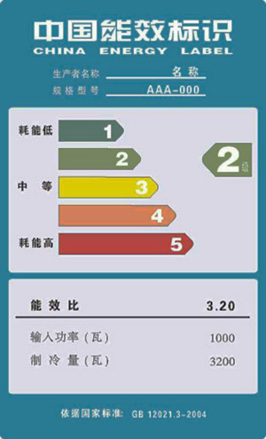 ▲现行的空调五级能效标识