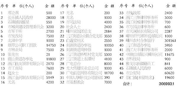 嵊州市慈善总会支援玉树地震灾区捐款情况公告(三)