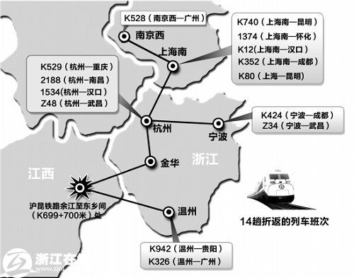 受火车脱轨事故影响,沪昆铁路金华、衢州以南的列车折返和停运。