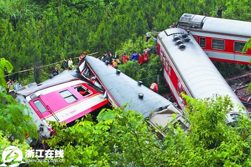 浙江在线05月24日讯 3日凌晨2时10分,因连日降雨造成山体滑坡掩埋线路,由上海南开往桂林的K859次(编组17辆)旅客列车,运行至江西省境内沪昆铁路余江至东乡间(K699+700米处)时,发生脱线事故,机车及机后第1至9节车厢脱线,中断上下行线路行车。