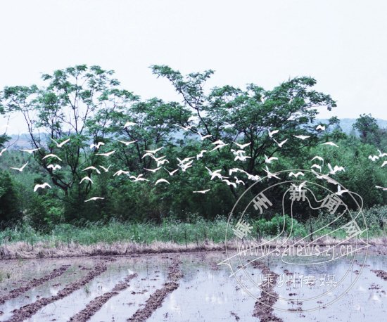 浦口街道屠家埠村绿水青山碧树的良好生态,近些日子引来了成群的白鹭来此栖息。瞧,上百只白鹭一忽儿在田畈水域间飞飞停停,一忽儿在新耕的泥块和田畔洼地上寻寻觅觅,一忽儿又呼朋引伴地在空中“白鹤亮翅”……好一幅恬然和美、绿色生态的画面!