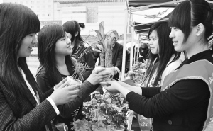 5月15日,嵊州市长乐中学、黄泽中学等学校的学生志愿者团队,在该市城市广场将校园试验的科技植物盆景进行爱心义卖,义卖所得全部捐赠给当地红十字会。图为义卖现场。(来源:天天商报)