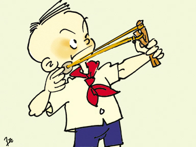 可操作性:找一个大树杈子,去皮,把树杈削整齐,然后把自行车内胎剪成细长条捆在树杈子上,就成了弹弓,碎石子、橡皮泥、泥团都可以作为子弹。