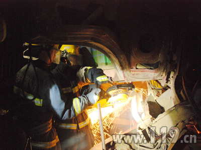 在灾害事故现场,消防官兵救人不仅要靠精锐的特种器材装备,而是靠过人的智慧和随机的应变能力。就在5月24日晚8时许,嵊州市消防大队官兵采取放掉轮胎内的气来增大救援空间的方法实施救人,并与交警、现场群众一起成功救出被困司机。
