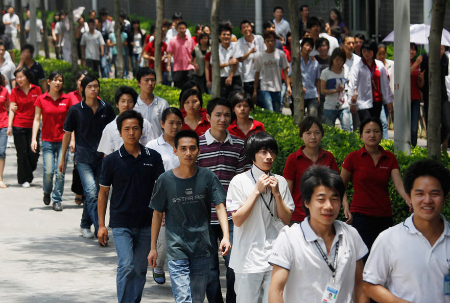 每天早上,男男女女,如潮水般,在科技园区出入口处汇集和散去,熙熙攘攘,数小时不断。图片拍摄于2010年5月26日