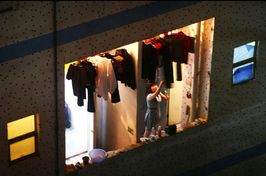 夏夜里,员工阳台都挂满了晾晒的衣物。图片拍摄于2010年5月。