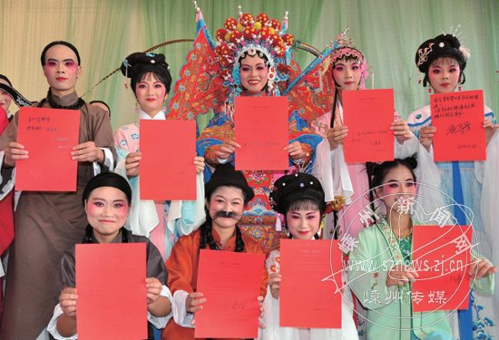 昨日,市越剧艺术学校的学员首次展示九位越剧前辈对该校创办越剧传承人班的祝贺寄语(如图)。据悉,为弘扬越剧的各个流派,更好地保护和传承越剧非遗,下学期,市越剧艺校将开设“传承人班”。袁雪芬、范瑞娟等9位健在的老一辈越剧表演艺术家获悉此事后,纷纷寄语表示支持。