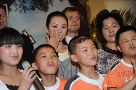 昨天是属于孩子们的六一,不少明星没有放过这个机会参与一些“应节”活动。现身四川德阳“孤残儿童寄养培训和流浪儿童保护中心灾后援建项目”发布会现场的章子怡,还在发布会后前往福利院看望了受灾儿童。在经历了“泼墨门”、“捐款门”等严峻的公共信任危机之后,昨天一身灰色的章子怡显得低调而自谦,一上台便表示:“今天,我不是大银幕上遥不可及的章子怡,我只是一个充满感恩的小女孩。”她还宣布章子怡基金会作为该项目主要支助方之一,将捐献出基金会账户中全部资金,即2008年5月21日在戛纳募集的40万美元,按相关协议规定,在该项目动工之日后,将款项打入关爱儿童组织的相关账户。这也是今年年初遭遇“捐款门”后,章子怡首度正式公布戛纳募捐的落实情况。