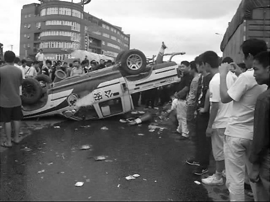 昨天,温州各大网站都流传着一段警车被掀翻的视频,视频的说明是:“白卵三轮车”(即当地没有牌照的三轮车)车夫被交警打了,引起众怒,大家掀翻警车……
