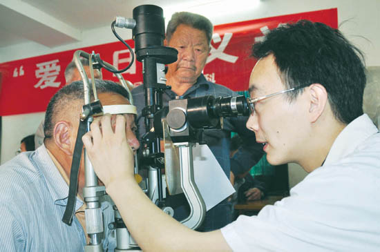 6月6日是全国爱眼日,今年爱眼日的主题是“关注贫困人口眼健康,百万工程送光明”。市民政局组织市人民医院的眼科专家到谷来镇,为当地群众开展眼病义诊活动。图为活动现场。