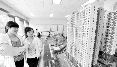 ▲6月10日,长沙市民在一售楼中心观看商品房楼盘模型。