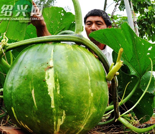 昨日,嵊州市丰尼果蔬专业合作社引种的超级南瓜品种,授粉后18天,个体重量已超过了25公斤,该合作社负责人表示,这种南瓜最重可达500公斤。南瓜个体25公斤,已属大南瓜,千斤南瓜期待在绍兴成为奇迹。