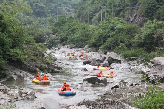 昨日,本网联合浙江在线组织杭州和嵊州两地的近30位网友互动,开展“走进百丈飞瀑摄影采风活动”。杭嵊两地网友一起到百丈飞瀑、百丈飞瀑漂流采风,既宣传推介了嵊州景区,又加深了双方之间的友谊。图为杭嵊两地网友在漂流。