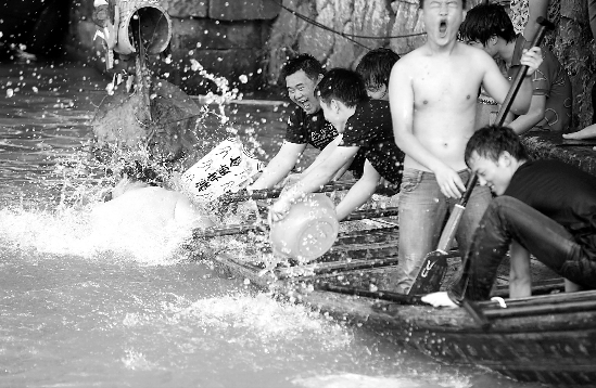 昨天下午,西溪湿地的深潭口,来自蒋村以及周边村落的村民摇着各自的龙舟,争相在游客面前一一亮相。 李翔 李震宇 摄
