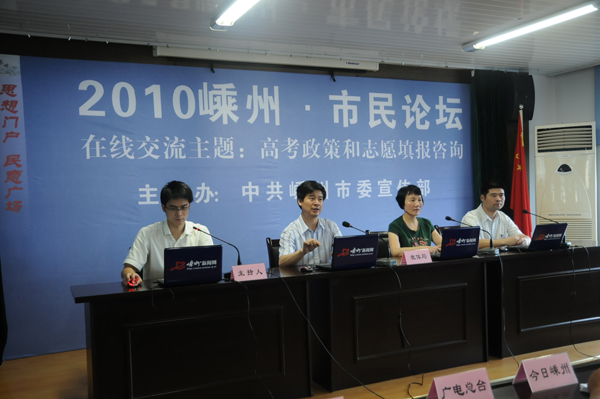 6月18日上午,2010年嵊州市第四场市民论坛在本中心如期进行。市教体局相关负责人就“高考政策及志愿填报”这一话题与广大网友开展在线交流。嵊州新闻网对此次活动进行了全程网络直播。