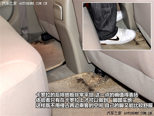 卡罗拉内部空间对于一般三口之家还算够用,身高190cm的编辑坐入车内,感觉前排头部还能有一拳以上的富裕空间,不过驾驶座不能调节高低,这不能不说是一个遗憾;而换乘到后排后,虽然相较前排,空间上有所缩减,但还是能给予乘客一个比较舒适的坐姿的,185cm的编辑坐在后排并没有太明显的压抑感,但是长途旅行难免会显得局促。