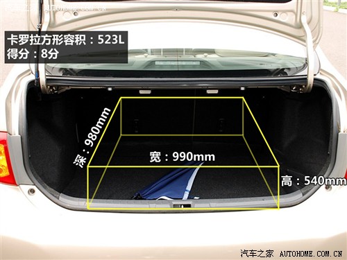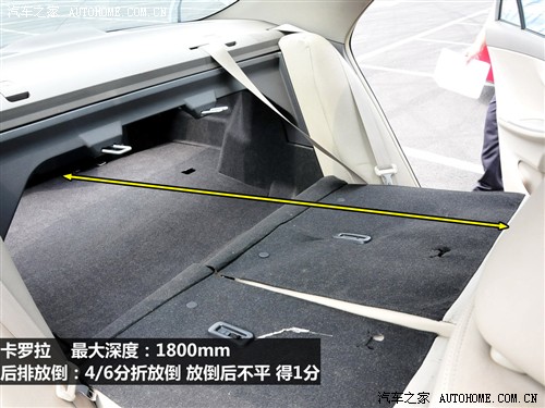 卡罗拉后备箱实用性比较高,用长方体衡量容积约为523L,一般的日常家用搬运都可以胜任,后排座椅可以以4:6的比例放倒,靠背放倒后地板不是完全水平,对装载有微微的影响,