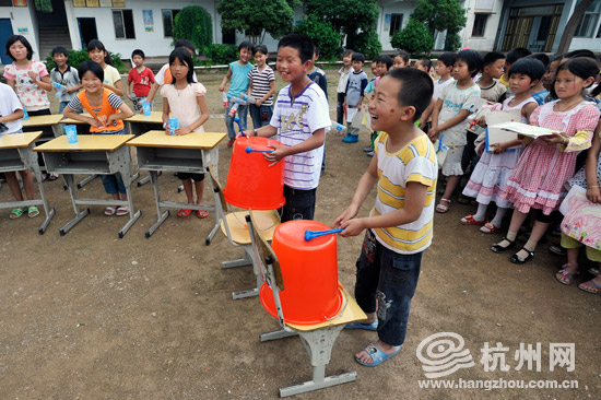 水桶、茶杯、空的矿泉水瓶都成了乐器。