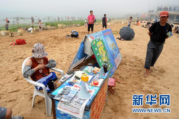 6月29日,栈桥海水浴场,海上快艇观光的经营点无人问津。新华社记者 李紫恒摄