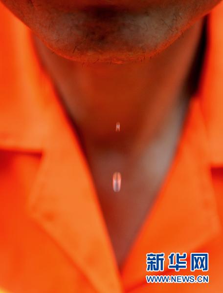 一滴汗珠从范文学的下巴上掉落下来(6月19日摄)。 新华社记者 姚剑锋摄