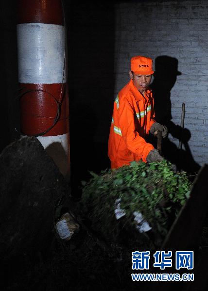凌晨4点左右,范文学开始在一个社区清运垃圾(6月19日摄)。新华社记者 姚剑锋摄