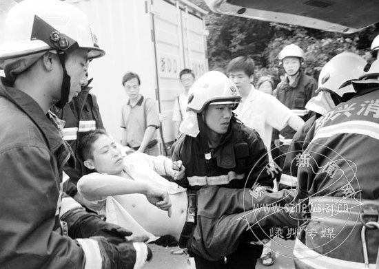 第一时间赶到现场的市消防大队官兵和交警立即展开救援,急救中心医护人员及时对伤员的伤口作了简单处理,并立即将伤员送上救护车(如图)。目前,事故原因相关部门正在进一步调查之中。