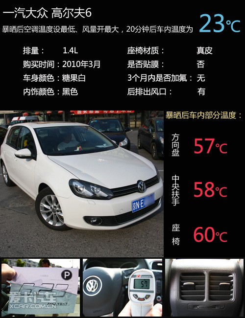 虽然高尔夫6车窗外片加有2.1mm的绿色吸热玻璃,但是这台没有贴膜的黑内高尔夫6车内温度还是在60度左右。开启空调,出风口吐出冷气的时间很快,后排出风口分担了些车内后半部分的降温工作,让车内乘客在短时间内感觉到了舒爽。