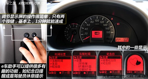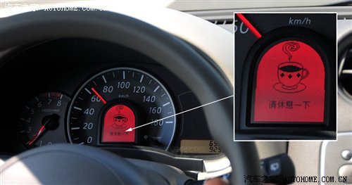 设置时只需要两个按钮便可以轻松操作,通过仪表盘的显示输入对应的信息,比如生日提醒就是选择好在几月几号就可以了,基本没什么难度,属于一分钟速成。除了显示生日或纪念日之外,e车助手还会在你驾驶时间较长后发出友情提示,告诉你该休息了,此时会有一杯咖啡的图像出现在屏幕中,很有意思。另外,它还能显示倒车雷达的情况,功能之丰富且特别真是同级车中不具备的。