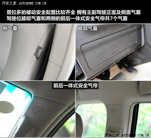 在被动安全配置上普拉多也有不错的表现,全车配备了主副驾驶正面、侧面气囊,驾驶员位置膝部气囊以及两侧的前后一体式安全气帘共七个气囊。后排乘客还有自己独立的自动空调系统,可以自己设定空调的温度和风速。