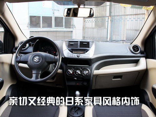 长安铃木全新奥拓的中控台设计简洁大方、操控顺手,单仪表盘设计与音响等各项控件对称地分布在中控面板上。高配车型配单碟CD播放器。值得一提的是高配车型的音响系统配备了当前流行的AUX接口。新奥拓搭载的是一款由铃木公司全新开发的三缸发动机K10B,这款发动机在常用的广泛转速区间具有较高的扭矩输出,即使车辆满载,发动机在时速100km以上时也能积极响应油门动作,提供充沛动力,经济性方面与同级别发动机相比优势明显。