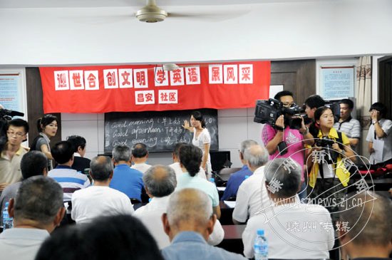 为迎接世合赛,绍兴市区50多个社区为市民开展了“迎世合、学英语”活动,帮助市民提高英语口语水平,方便与外国友人的简单日常交流。