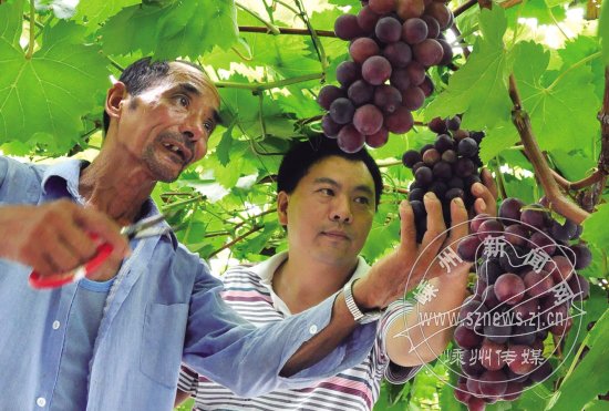 市农科所的优质葡萄基地里,夏黑、贵妃玫瑰等国外引进的多个早熟葡萄已开摘上市,成为市场上的时令水果。图为昨日采收的现场。