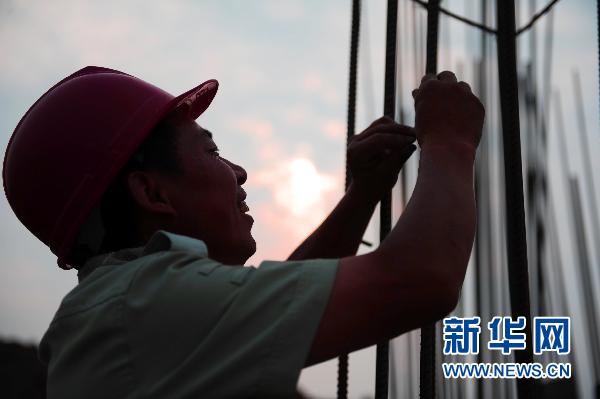 7月7日,在安徽亳州市南部新区建设工地,工人在高温下工作。当日是农历小暑节气,亳州市继续出现高温天气,建设者们在烈日下坚持工作。 新华社发(张延林 摄)
