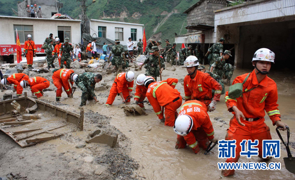 | 7月13日,消防官兵正在清理受灾现场。新华社发 (闫科任摄 |