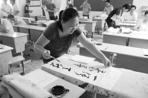 7月8日上午,嵊州市“骋能笔墨”中小学幼儿园教师三笔字比赛在剡山小学举行,来自该市幼儿园、小学、初中和高中的近百名教师参加了比赛。比赛按照钢笔字、毛笔纸、粉笔字的书写顺序展开。据悉,此次比赛是嵊州市第七届中小学幼儿园艺术节活动之一。