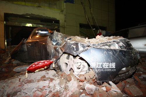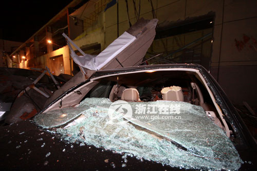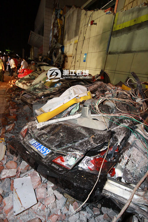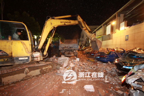 衢州一家居博览中心外墙倒塌 27辆轿车被埋