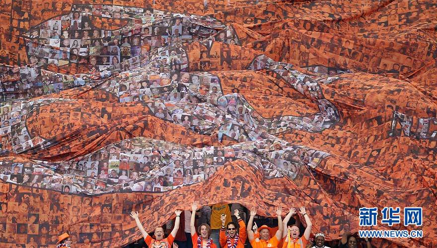 6月19日,荷兰队球迷在为球队加油。当日,在德班举行的2010年南非世界杯足球赛E组的第二轮比赛中,日本队迎战荷兰队。新华社记者廖宇杰摄