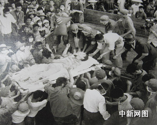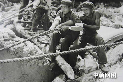 在没有大型起重工具的情况下,解放军战士用双手拨开重物救出了一万六千多人。