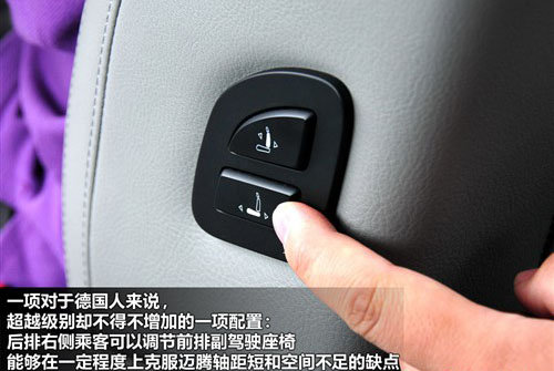 迈腾2709mm的轴距基本已经达到中型车轴距的底线,所以后排乘客的乘坐空间一直是迈腾的一个弱项,为了弥补这一缺点,迈腾特意在2011款车型中加入了一项非常高级的功能,可以从后排对副驾驶座椅进行4向调节(座椅及椅背前后调节)。