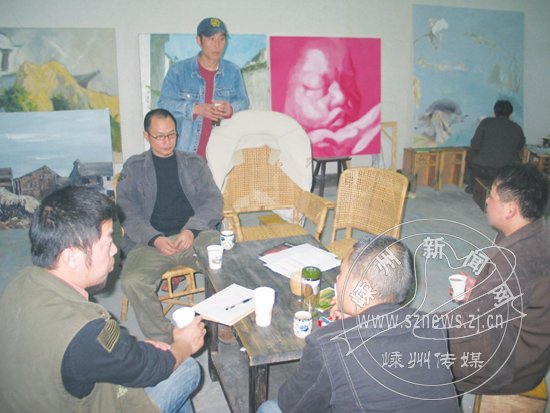 姚镇波是市越剧团的舞美,对油画也非常爱好,但以前也就是在家里利用业余时间画一些作品,全凭自己爱好,也没有人交流、指点。自从有了“驼群”,成员之间经常在一起就作品、思想等进行沟通交流,吸收别人的长处,让他感觉一下子提高很快。如他参加浙江省美展之前,就把参展的作品拿给“驼群”的画友们交流,大家针对作品中的成功和不完美之处,各抒己见,他加以修改,直到作品满意为止。这也成为“驼群”的一个惯例,凡是要参加展览或比赛的作品,都会先集中起来,由“驼群”成员一起交流。