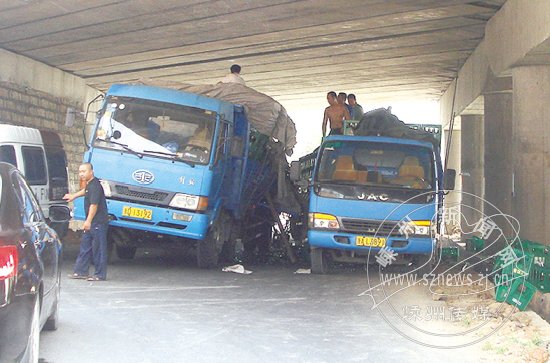 昨日上午9点左右,104国道招士湾地段的桥洞下,一辆货车发生事故,车上的啤酒瓶撒落一地,造成交通拥堵。在此提醒:酷暑天气,人易疲劳,请驾驶员安全行车,货物不要超载,也不要超速行驶,特别是过桥穿洞,更要慎行。