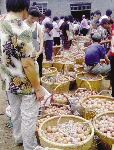该合作社开秤第一天就收购了7500公斤左右,合作社带的2万多元现金,不出1个小时就全部到了果农手中,接下来的果农只能先拿一张欠条回家了。据现场工作人员估计,前天上午收购的桃形李均价在每公斤10元左右,“平均价这么高,应该说质量是非常不错的。”