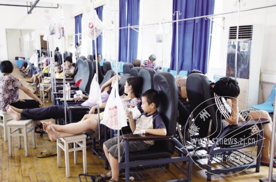 为了躲避“桑拿天”,很多市民躲进了空调房。记者昨天从市人民医院了解到,最近医院输液室内人数陡增,每天来到市人民医院输液的人数有500多人,其中以小孩和老人居多。